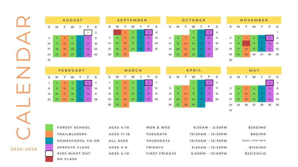 We are an all-weather program and strive to spend at least 85% of our learning time outdoors. In the event of inclement weather, we will move our lessons inside to the farmhouse table.